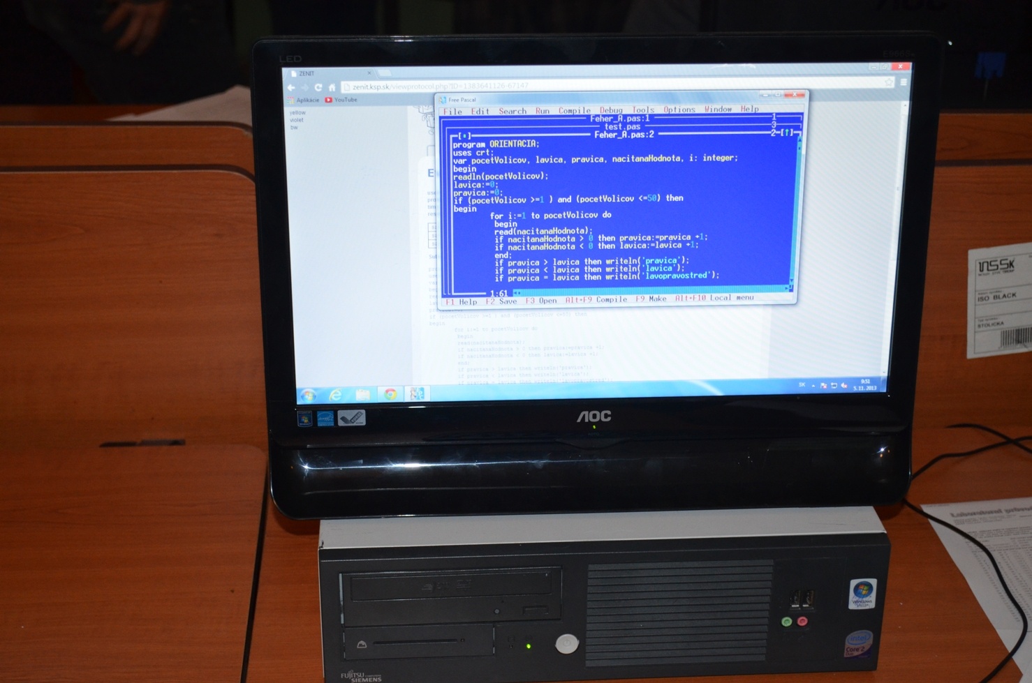 Školské kolo súťaže ZENIT v programovaní sa konalo 5.novembra 2013 v čase od 8.00 hod. do 12.45 hod. v učebni U21a, SOŠ automobilová, Moldavská cesta 2, Košice!