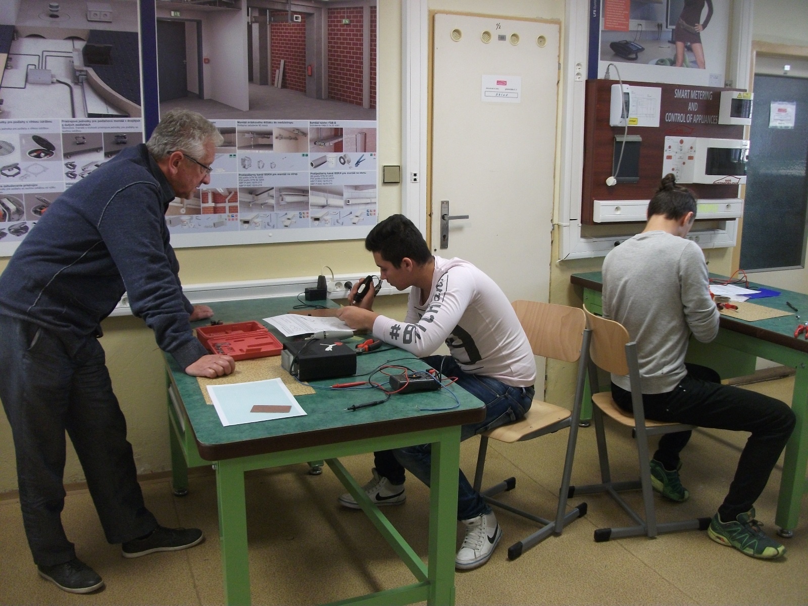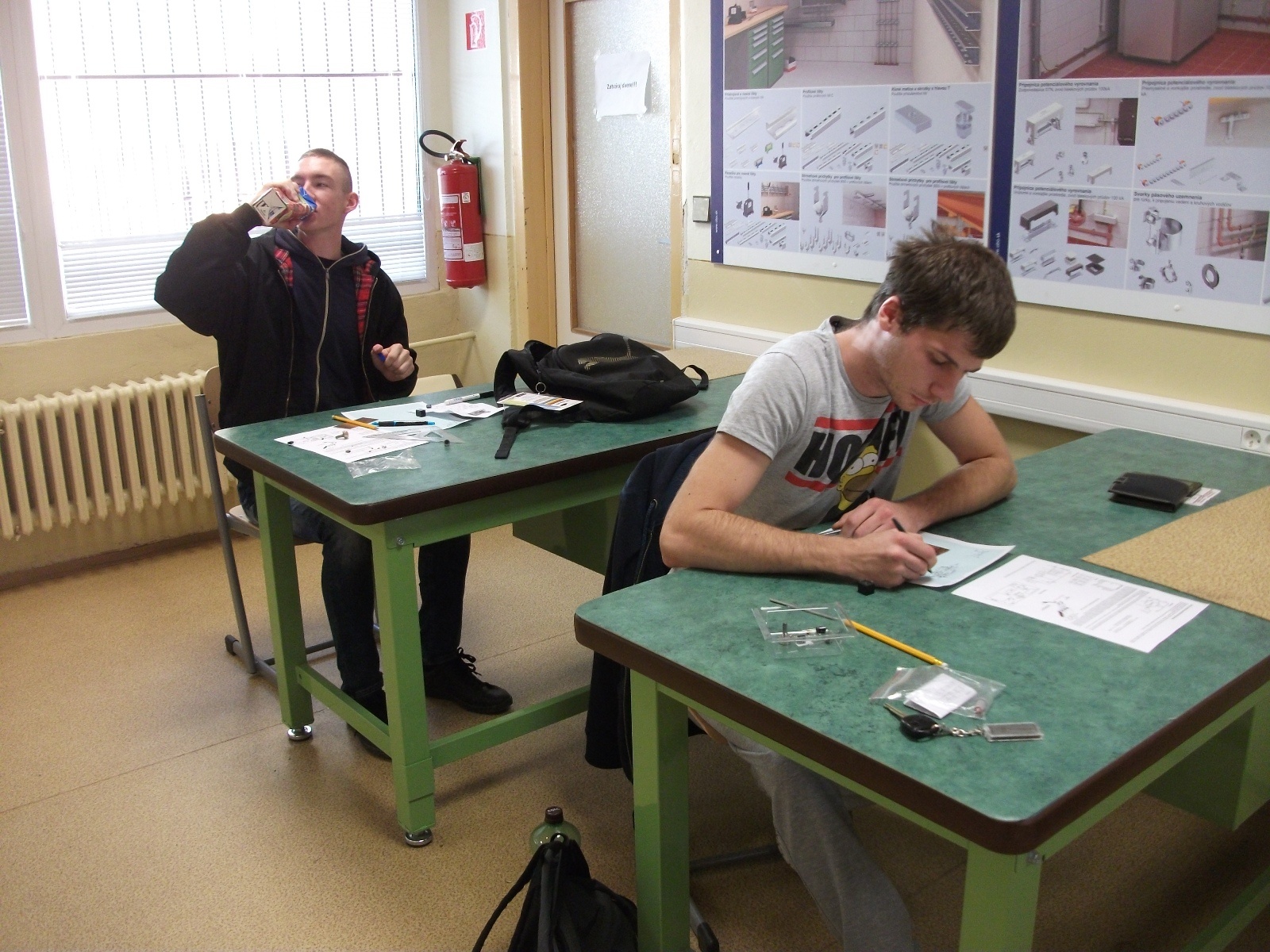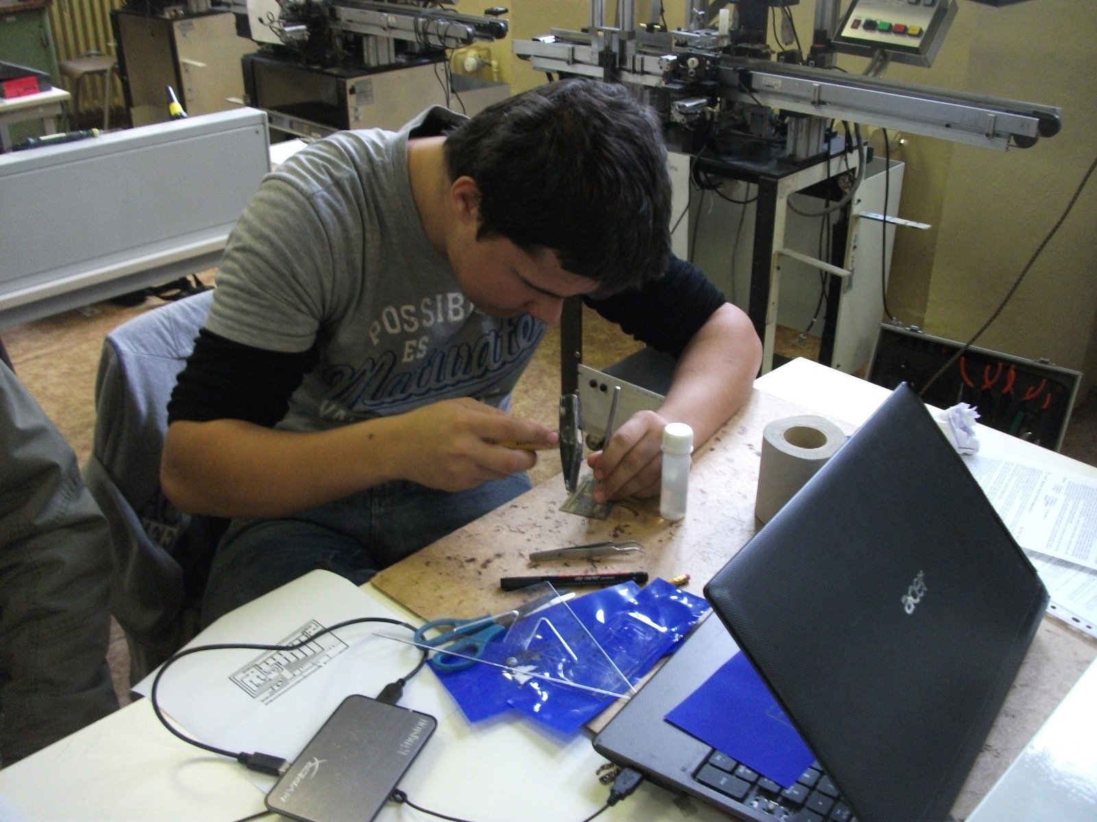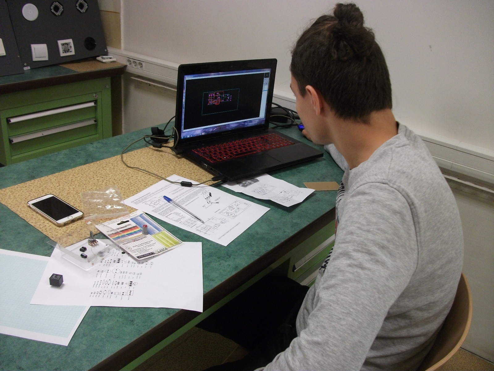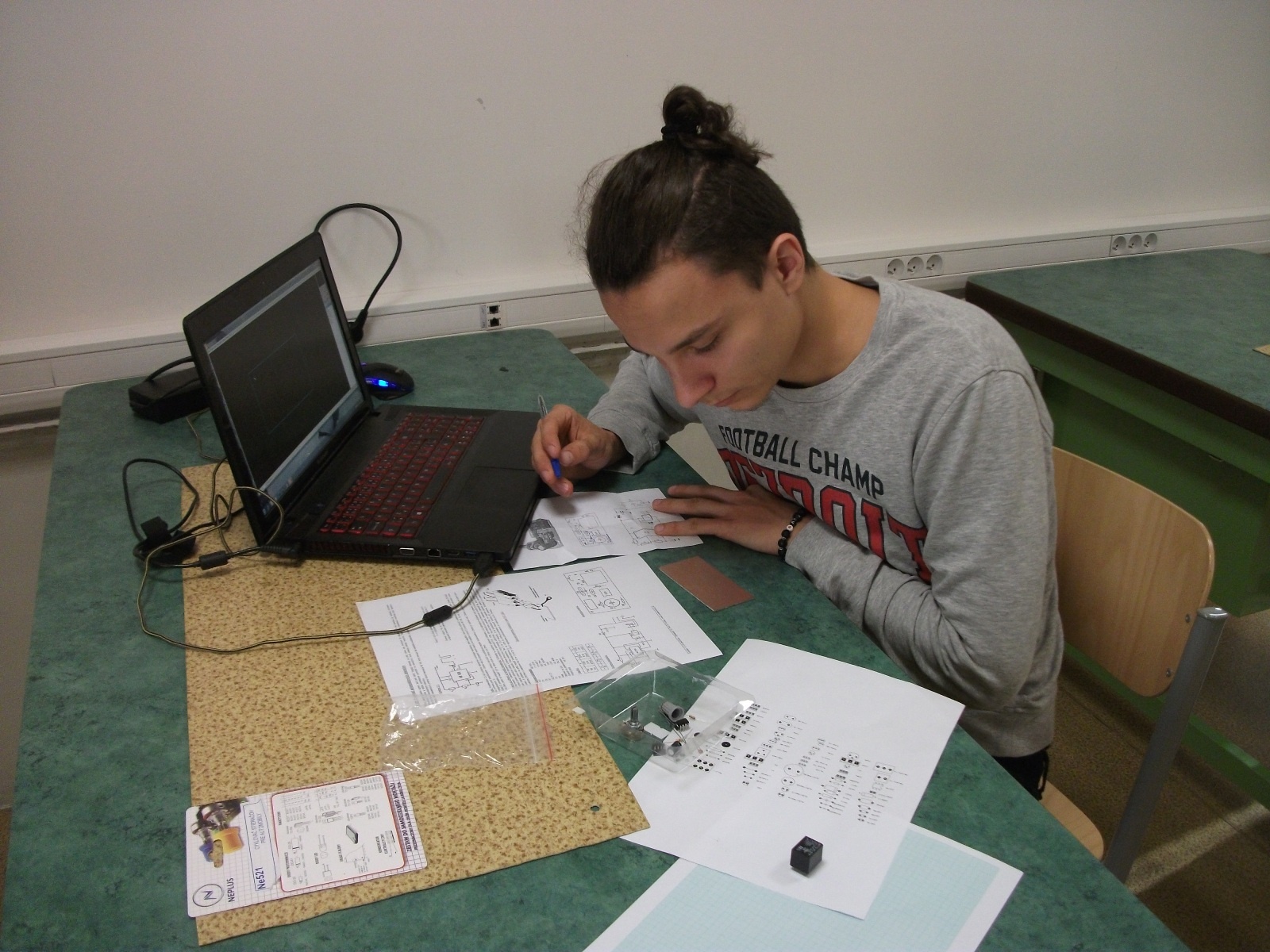 Tak ako každý rok, aj v tomto roku prebehla na našej škole súťaž Zenit v elektronike. V školskom kole súťažilo 14 žiakov. Všetci absolvovali teoretickú časť 5.11. 2015. Teoretická časť pozostávala z testu s 30 otázkami z oblasti elektroniky a elektrotechniky. Na praktickú časť, ktorá sa konala 6.11.2015 postúpilo 7 žiakov (Sú vyznačení zelenou farbou). Žiaci na praktickej časti navrhovali a realizovali plošný spoj pre cyklovač stieračov do auta podľa zadanej schémy zapojenia. Teoretickú časť pripravili a zrealizovali učitelia odborných predmetov Ing. G. Brecher a Ing. S. Kravcová, praktickú časť pripravil a realizoval majster odborného výcviku F. Hegeduš, ktorý je aj autorom našich fotiek. Komisiu tvorili F. Hegeduš, V. Vaško, Ing. J. Tarjányi a Ing. G. Brecher.