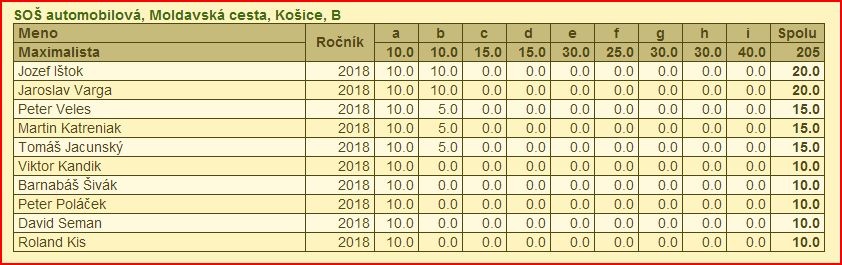 1. Varga Jaroslav, trieda II.D1, za kategóriu „B“, Ištok Jozef, II.D1 za kategóriu „B“ – za postup do krajského kola súťaže a účasť na krajskom kole,