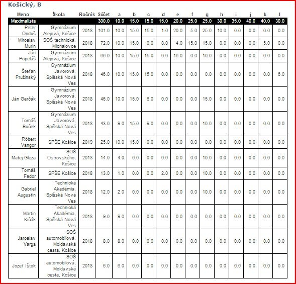 Na krajské kolo súťaže postúpili len žiaci zo 7-ich škôl Košického kraja, čo pokladám za veľký úspech žiakov našej školy, pretože záujem žiakov o programovanie je malý. Do celoštátneho kola z naśich žiakov nepostúpil nikto. Našim súťažiacim žiakom ďakujeme.