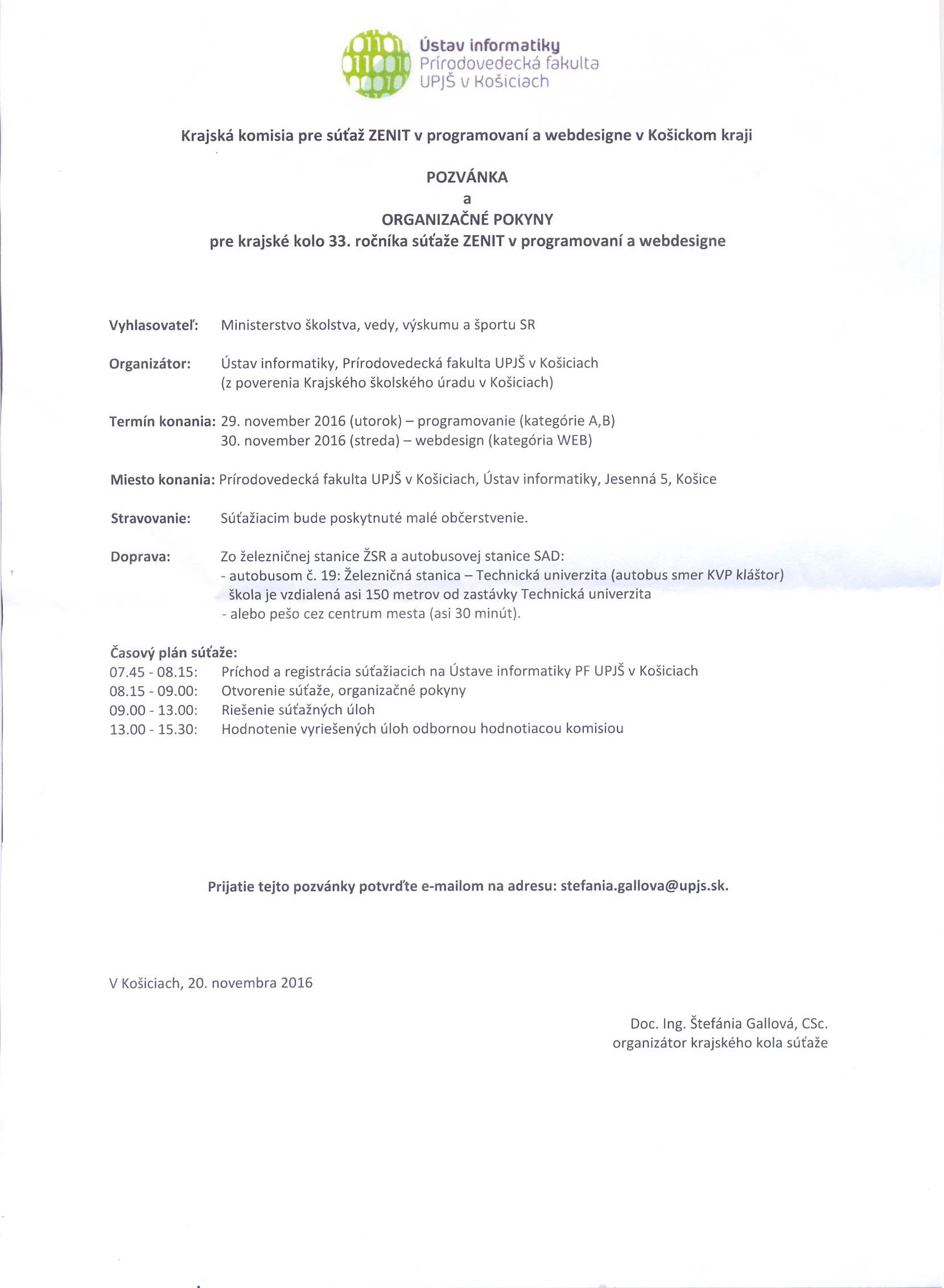 Krajské kolo ZENIT v programovaní kategória A ZENIT v programovaní kategória B |