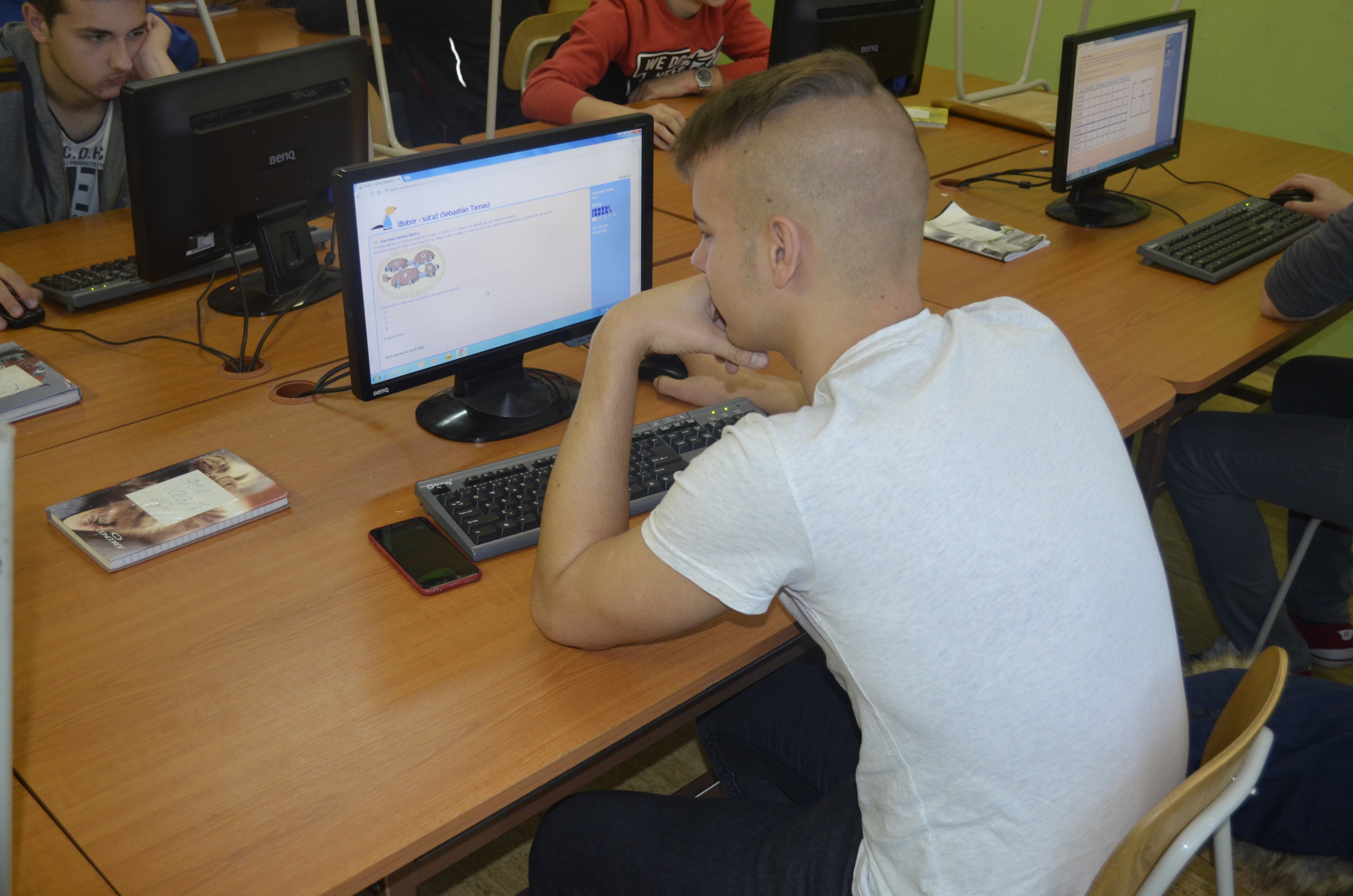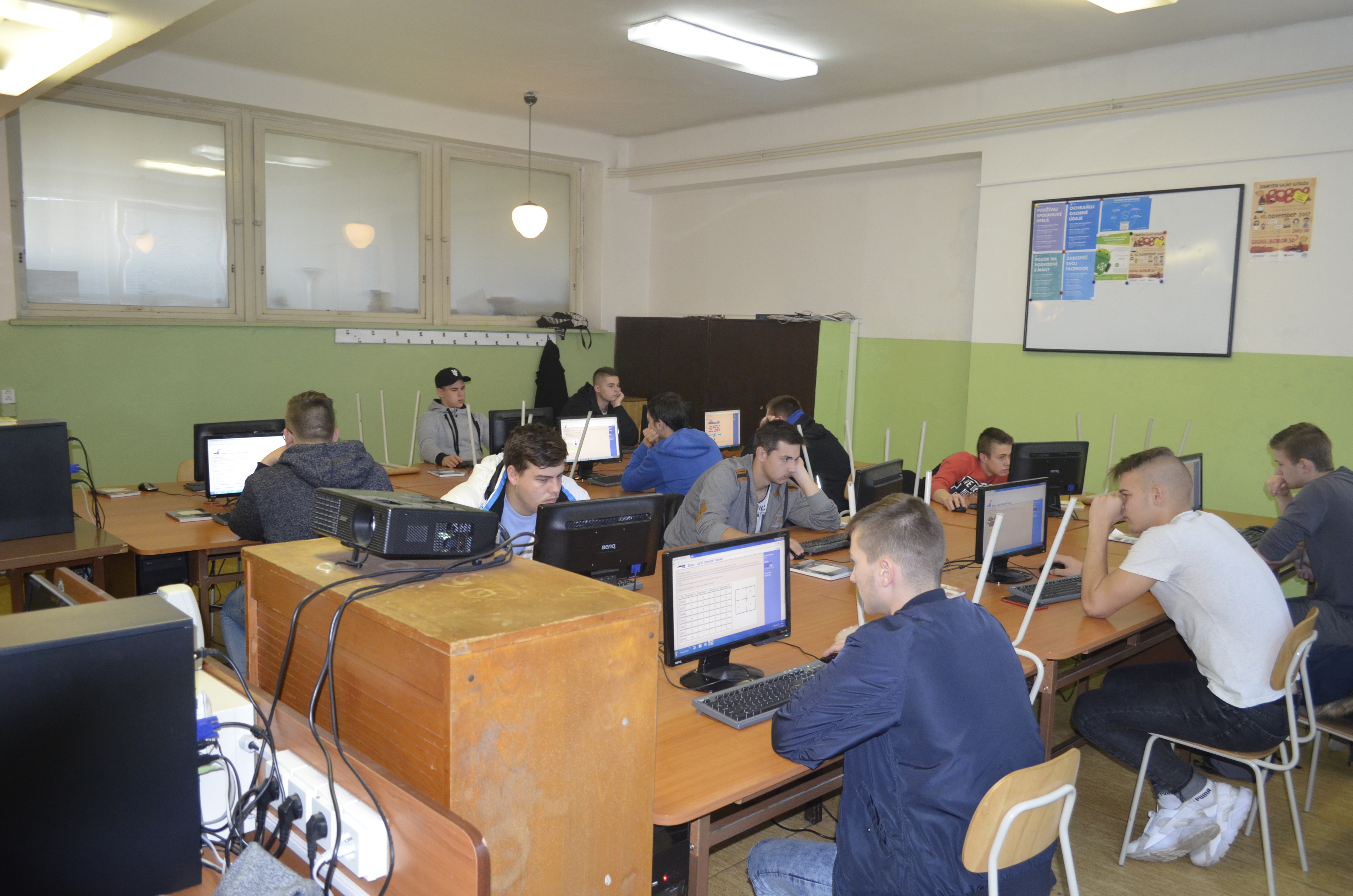 Dňa 6. a 7.11.2017 sa uskutočnilo celoštátne online kolo v súťaži iBOBOR 2017. 6.novembra 2017 súťažili žiaci v kategórii „JUNIOR“ a 7.novembra 2017 súťažili žiaci v kategórii „SENIOR“. Súťaž sa uskutočnila v počítačovej učebni U6, stretnutie súťažiacich bolo o 9.00 hod. pred U6 a koniec súťaže o 13.30 hod. Na súťaž sa prihlásilo a bolo registrovaných 52 žiakov, viď. nasledujúca tabuľka Tabuľka 1.. Z nich spolu s náhradníkmi súťažilo 40 žiakov. Koordinátor a ped. dozor bol: RNDr.M.Balažka.