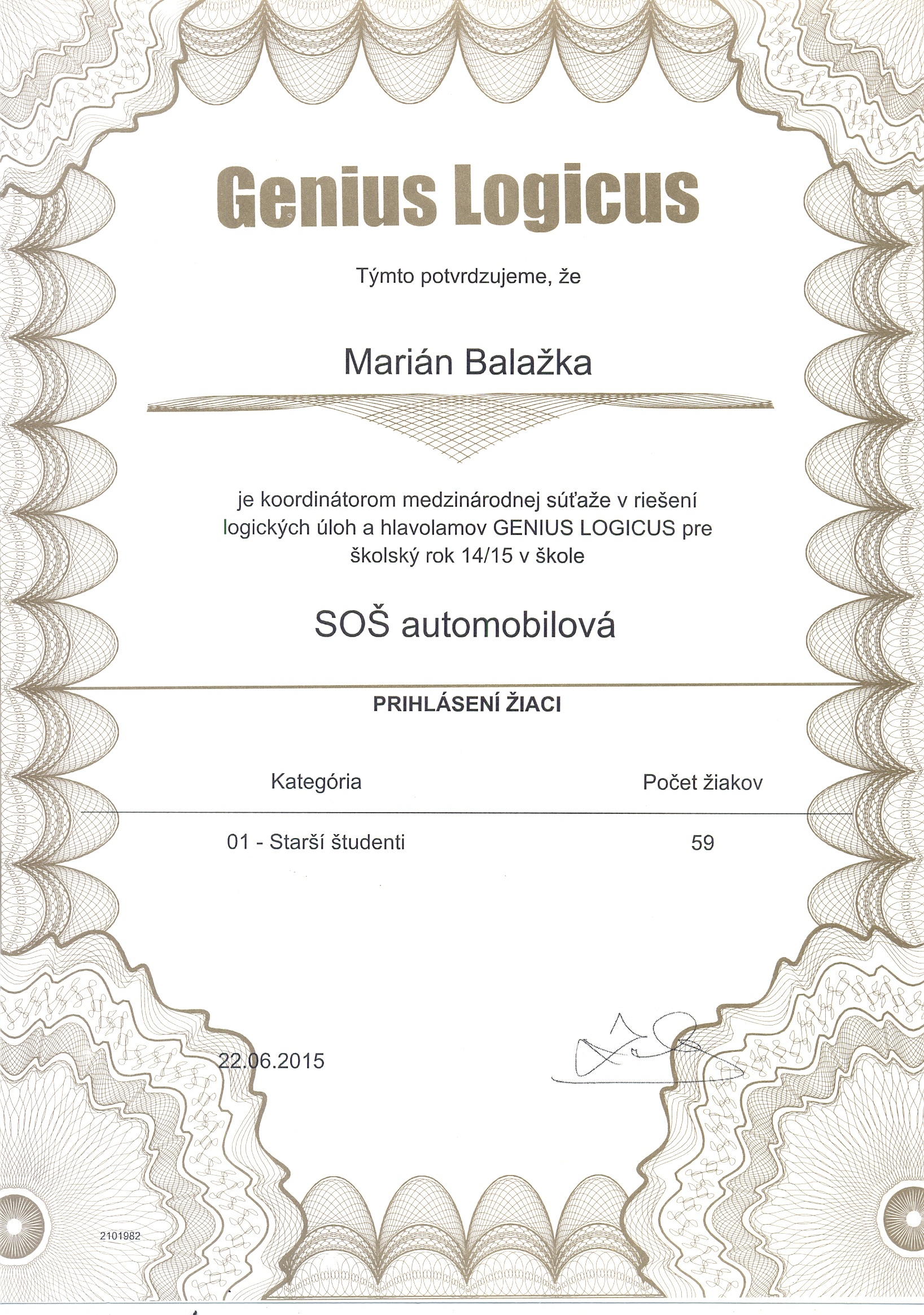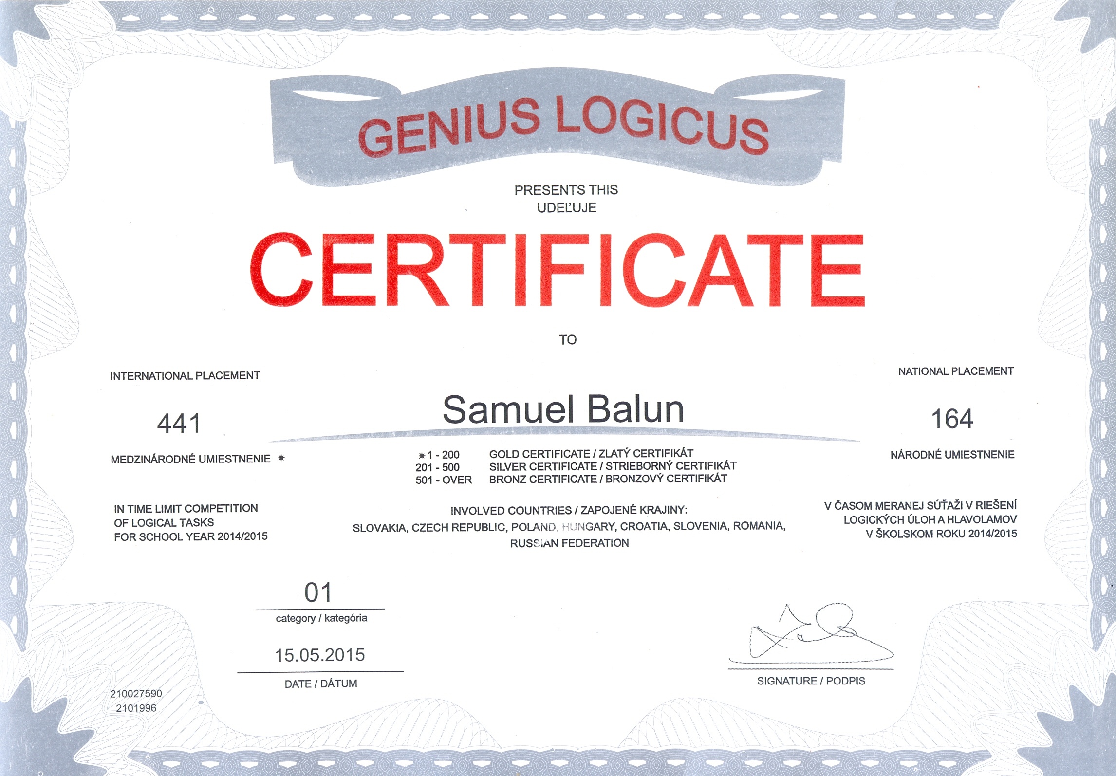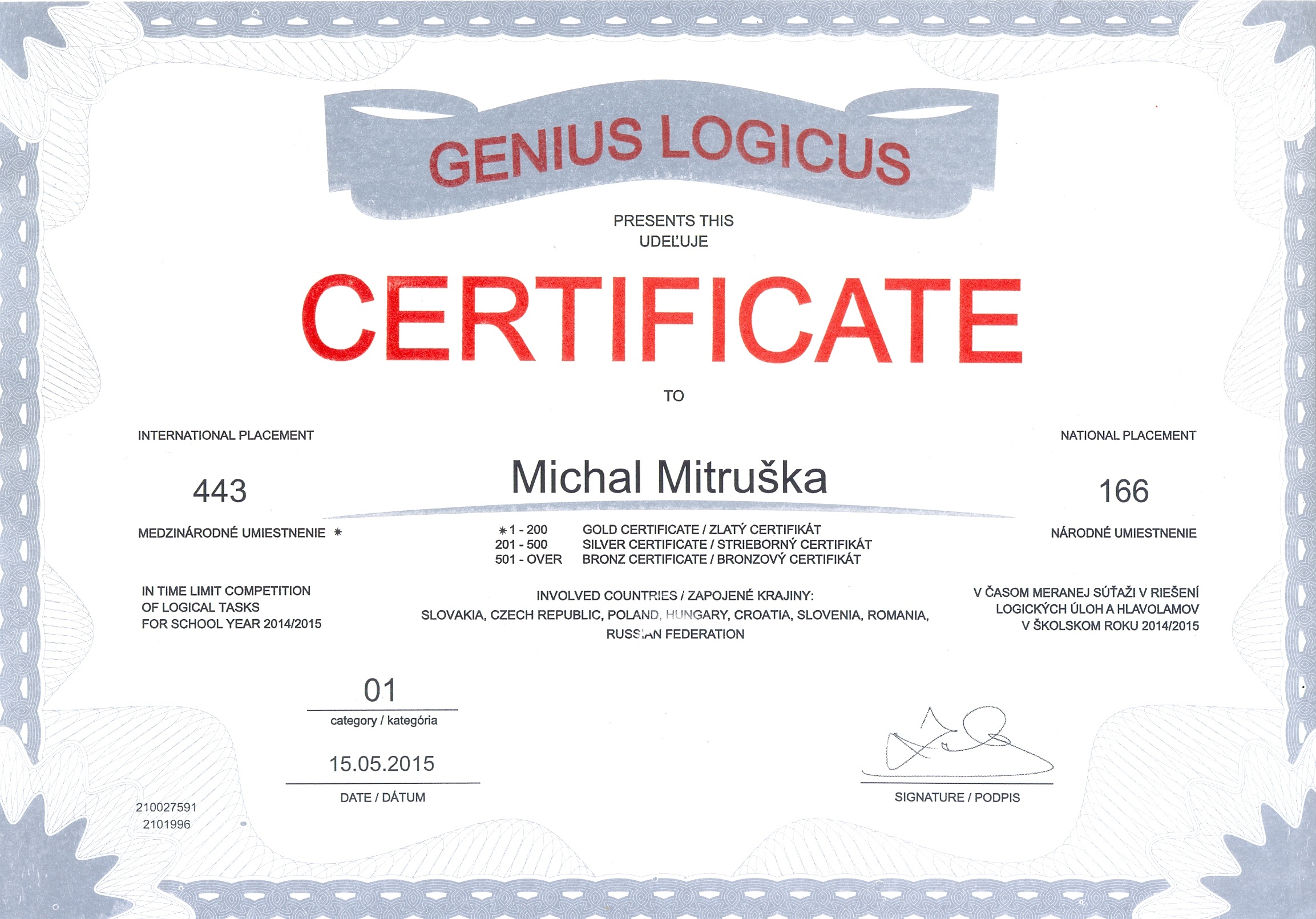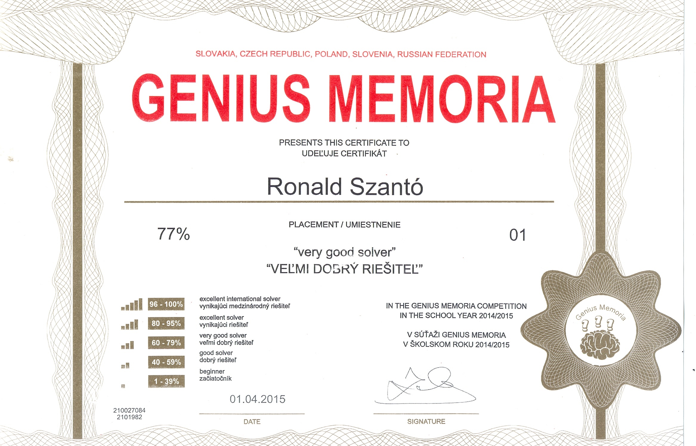 Pozrite si fotogalériu vybraných získaných certifikátov zo súťaží: GeniusLogicus, GeniusMemoria a GeniusMathematicus v školskom roku 2014/2015: