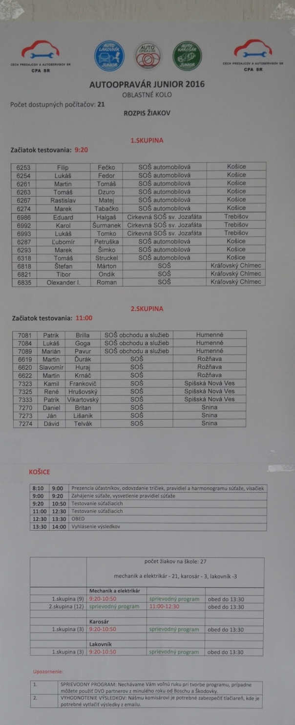 - Oblastné kolo súťaže Autoopravár JUNIOR 2016 v školskom roku 2015/2016.