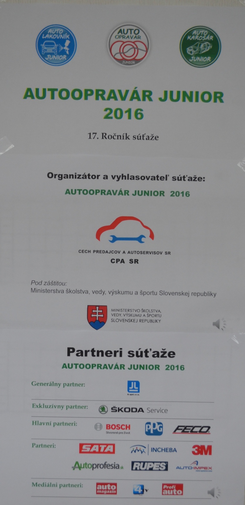 - Celoštátne kolo súťaže AUTOOPRAVÁR JUNIOR 2016 - účasť našich žiakov!