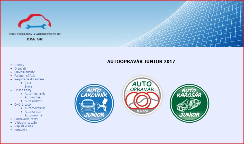 - Autoopravár JUNIOR 2017 - oblastné kolo kategórie mechanik a elektrikár.